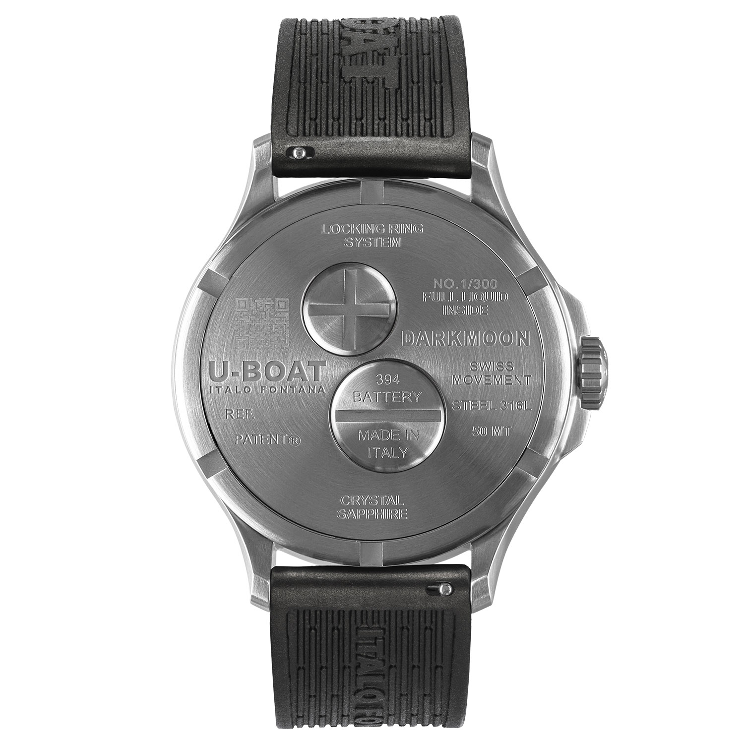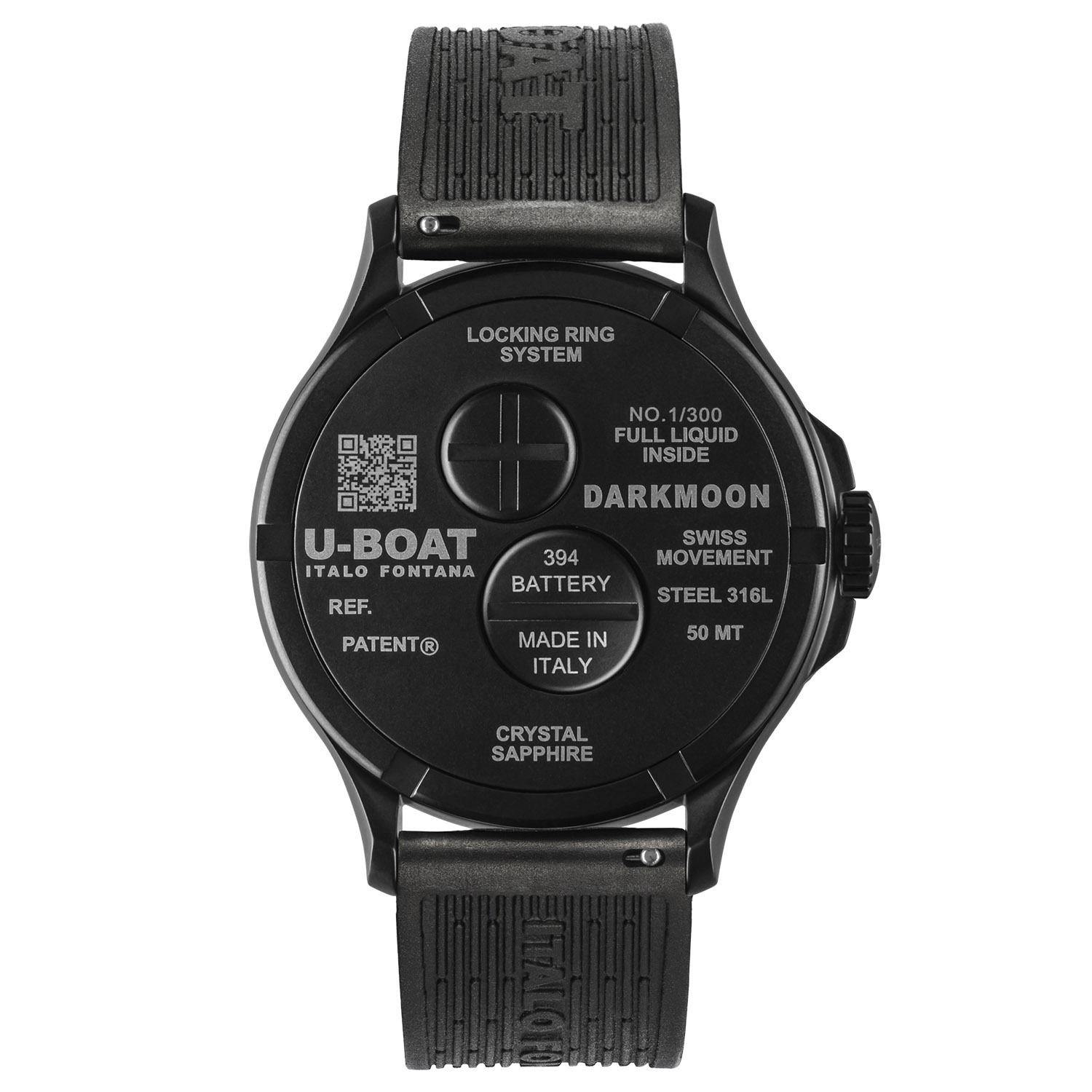 Завинчивающаяся задняя крышка снабжена фирменной системой Locking Ring System с иллюминатором для быстрой замены батарейки и, при необходимости, пополнения масла. Дополнительно нанесён индивидуальный серийный номер и лазерная гравировка с QR-кодом, открывающим доступ к цифровому контенту U-BOAT на смартфоне.