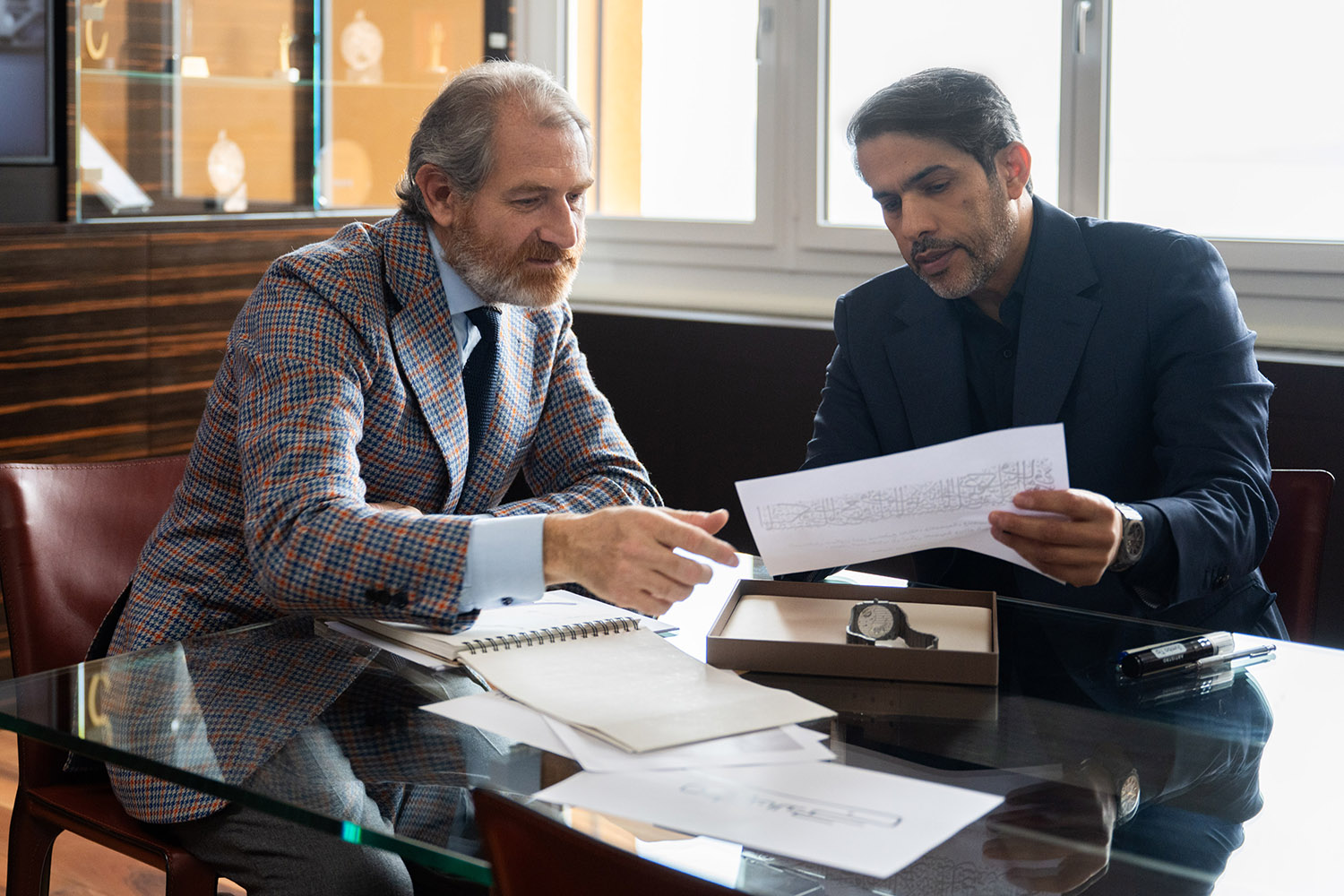 Фабрицио Буонамасса Стильяни, исполнительный директор по разработке продуктов Bvlgari, и Маттар Бин Лахедж вступили в творческий диалог, отражающий неизменную приверженность Bvlgari объединению искусства, наследия и новаторства в различных культурных контекстах. Это их взаимодействие соединило точность итальянского дизайна и текучий ритм арабской каллиграфической вязи, создав часы, воплощающие двойную художественность: швейцарскую часовую техническую строгость и эмиратскую эмоциональную выразительность.