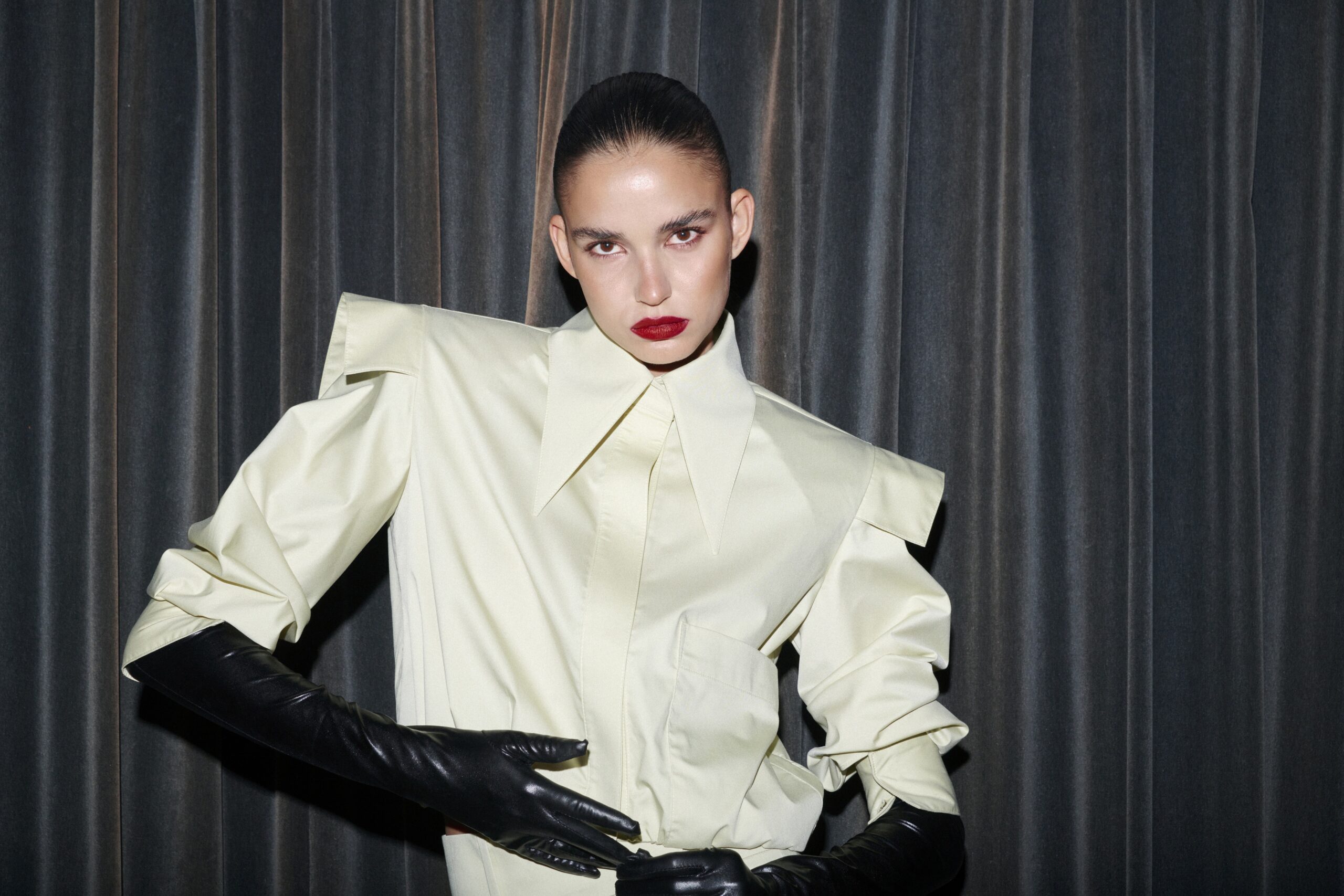 Octavio: Моя коллекция называется «Свет и Тень». Она представляет собой манифест женской силы, которая проявляется через противо­положности. Свет — это чувственность, открытость, движение. Тень — это глубина, структура, драма. Меня вдохновляет дуальность женщины — она одновременно нежная и сильная, прозрачная и непоколебимая. Я работаю с большим количеством цветов, предпочитаю выражать смысл через материалы и пропорции. Цвет, как и тень, является инструментом, который должен работать на идею, а не отвлекать от нее. При создании этой коллекции я вдохновлялся французским художником Пьером Сулажем.