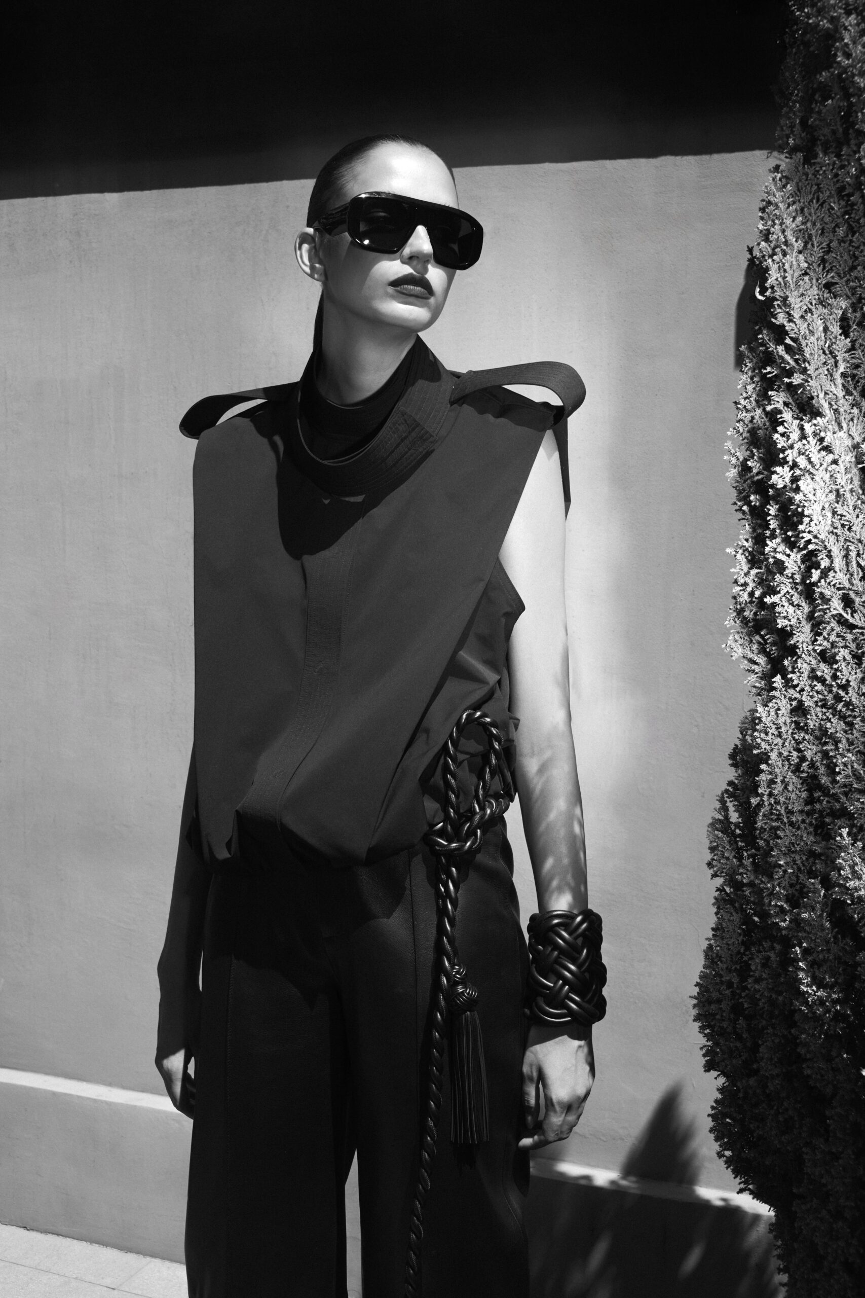 Octavio: Сулаж научил меня воспринимать черный не как цвет, а как состояние. В его работах не встретишь двух одинаковых черных оттенков: в них представлены светлый черный, матовый черный, насыщенный глянец. Я работаю не с цветом, а со светом, с ощущением. Я стараюсь передать это и в своей одежде. Для меня черный — это не отсутствие цвета, это жизнь формы, объема, поверхности.