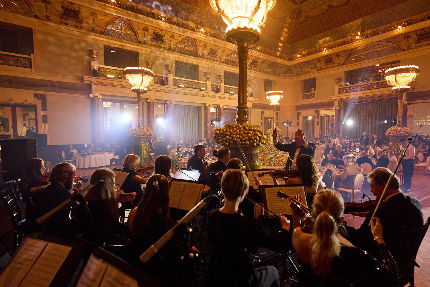 Сюжет праздничной программы «Новогодняя ночь в городе М» берёт своё начало от идеи знаменитого мецената Саввы Мамонтова, который считал «Метрополь» городом в городе, где есть всё для счастья и роскоши.