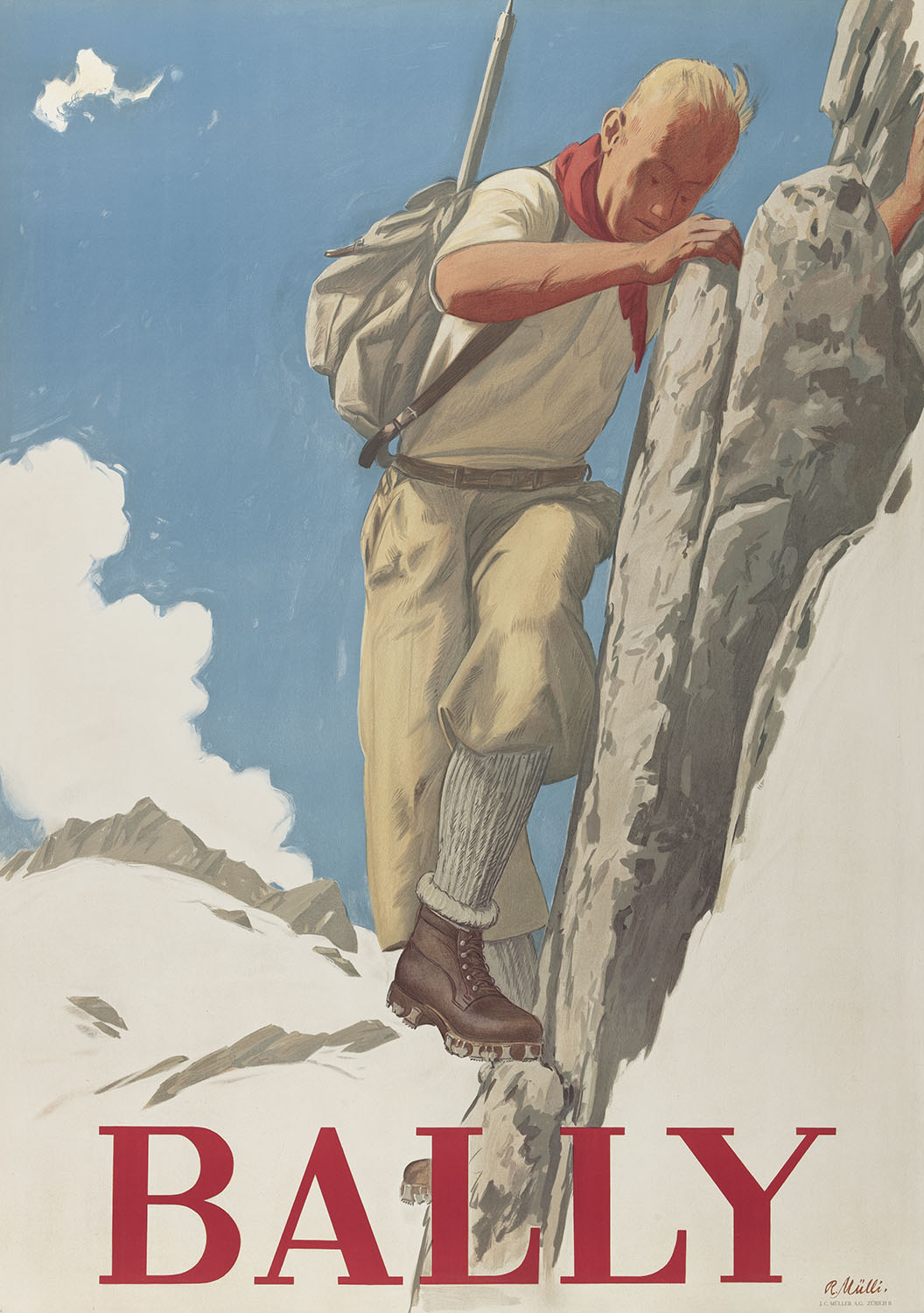 Связь BALLY с альпийским миром глубоко укоренена в спортивном наследии марки. Уже в первой половине XX века бренд активно экспериментировал с технической обувью, в том числе представив в 1920-х годах подошву Sparta с выразительным протектором. Важной вехой стал 1947 год, когда BALLY поставлял обувь для швейцарской экспедиции на Эверест. А в 1953 году Тенцинг Норгей совершил первое успешное восхождение на вершину мира в ботинках BALLY Reindeer, навсегда связав имя дома с темами выносливости, исследования и преодоления.