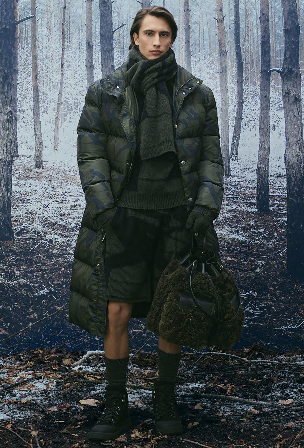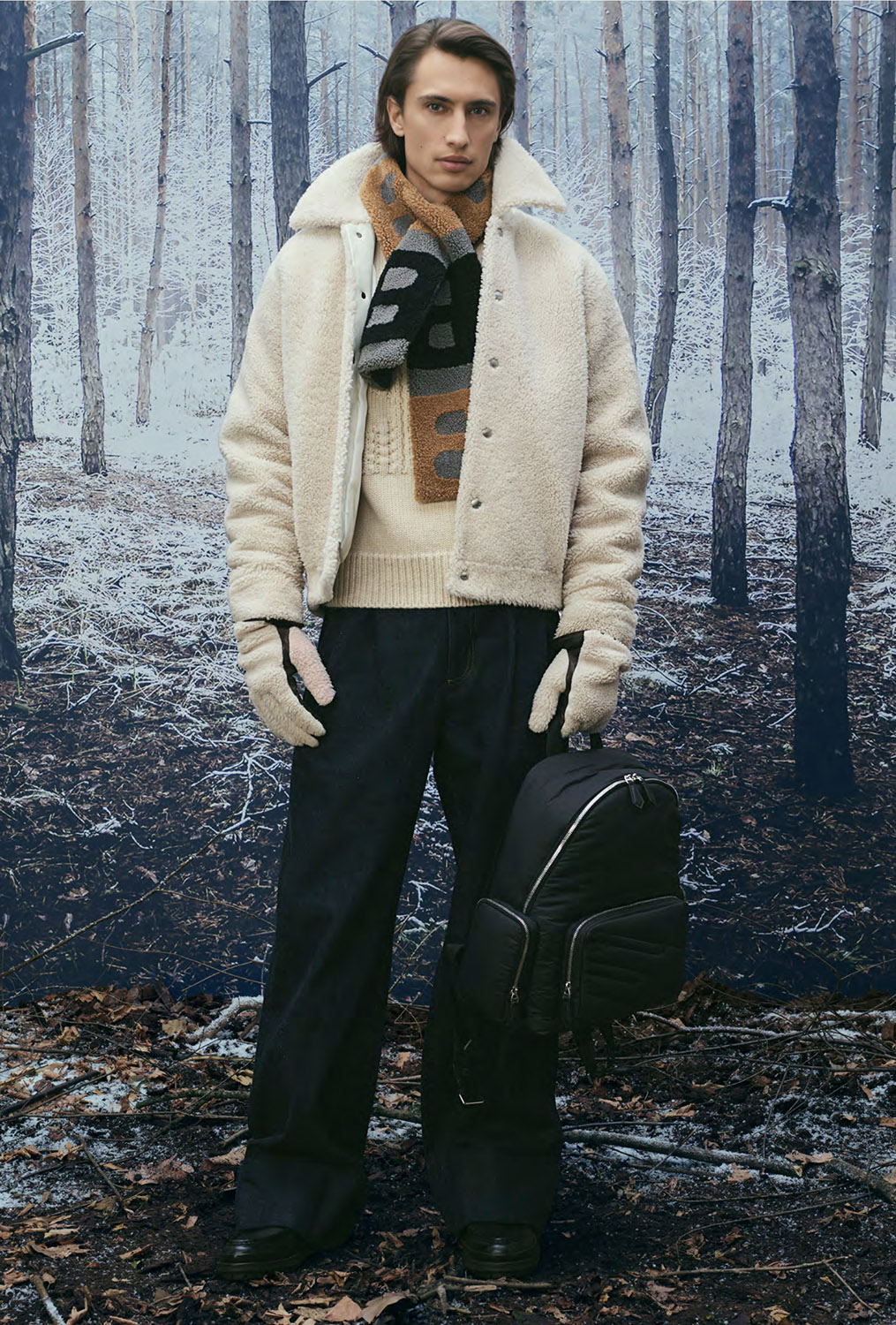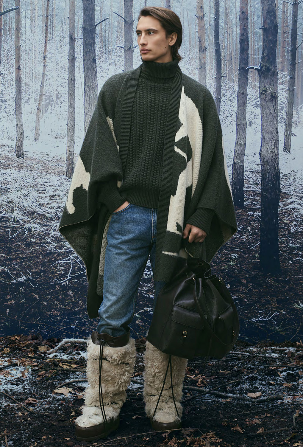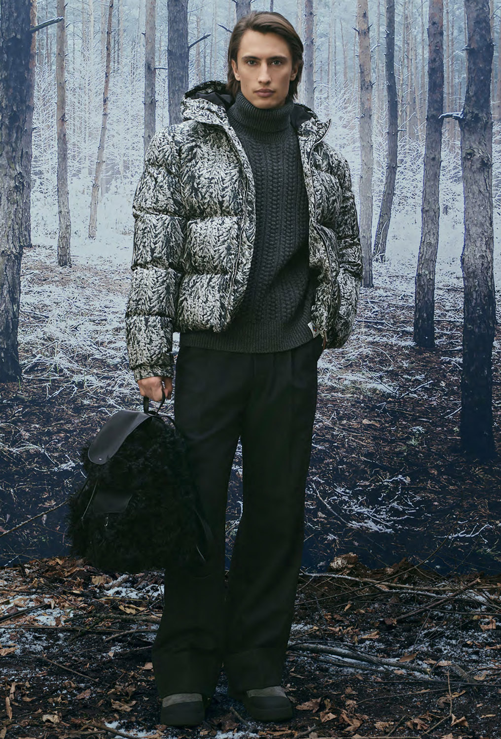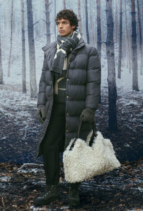 Технические материалы получают архитектурную четкость линий, а утилитарные элементы, включая подчеркнуто крупные карманы на сумках нового сезона, доведены до уровня люкса благодаря отделке и традиционному швейцарскому качеству исполнения. Мех, шерсть и объемные утепленные формы задают визуальный ритм коллекции, где функциональность и утонченность существуют в равновесии. Это альпийский гардероб, одинаково органичный и в горах, и в городском пространстве.