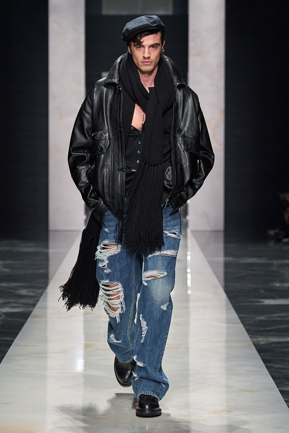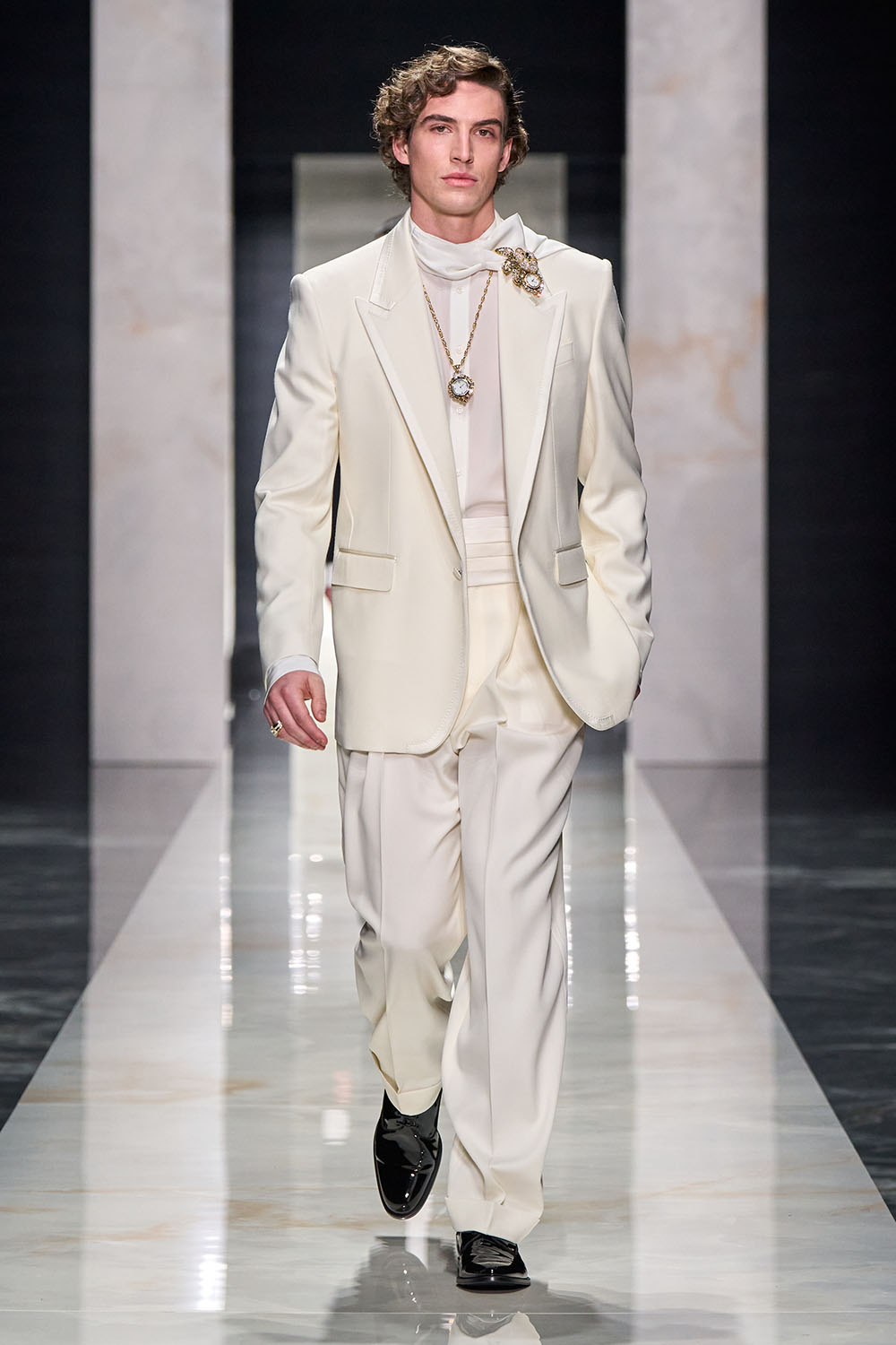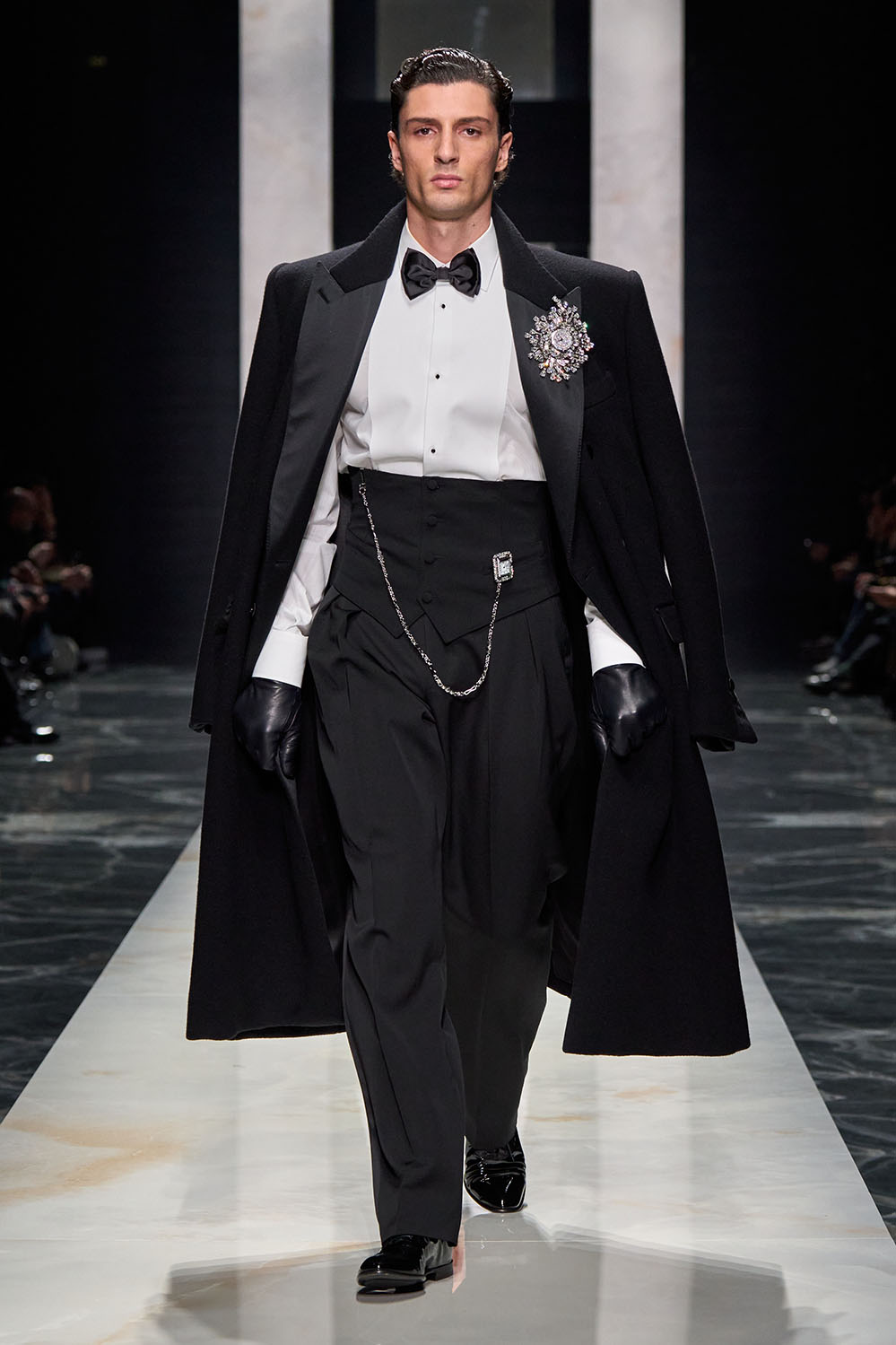 Ключевым элементом коллекции стала портретная скульптура силуэтов, вдохновлённая светотенью эпохи итальянского Ренессанса. Dolce & Gabbana использовали разнообразные ткани — от тяжёлого бархата до плотной шерсти и матового шёлка, таким образом, чтобы текстуры передавали не только визуальную богатство, но и эмоциональность образов.