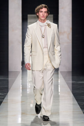 В основе Portrait of Man — отказ от шаблона и призыв к глубокой индивидуальности. Подиум превратился в галерею живых образов, где каждый наряд функционирует как психо-сарториальный автопортрет. Коллекция делится на несколько архетипов личности: анализирующий мыслитель, креативный стратег, структурированный рационалист и неугомонный романтик. Это не клише, а попытка визуализировать разные человеческие энергии посредством моды.