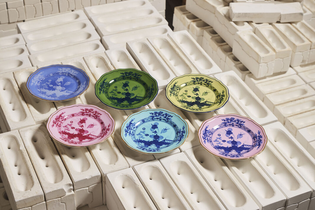 Создание каждого предмета коллекции Ginori 1735 включает множество этапов: все начинается с авторского эскиза и лепки формы вручную, затем следует литье, глазурование и многократный обжиг при температуре до 1400°C. Затем предметы расписываются вручную натуральными пигментами, золотом и платиной, декорируются с использованием ремесленных и промышленных методов. Вся продукция Ginori 1735 проходит строжайший контроль качества: в продажу поступают только абсолютно безупречные изделия.