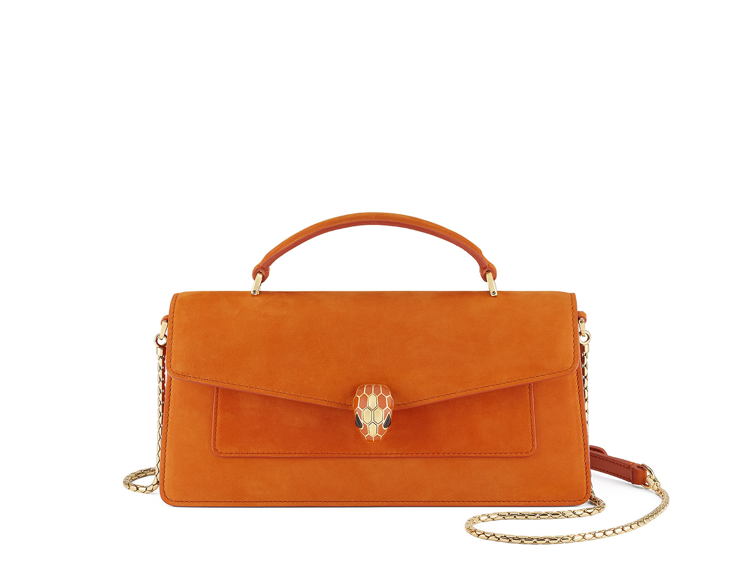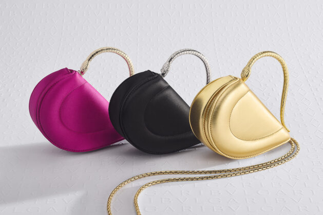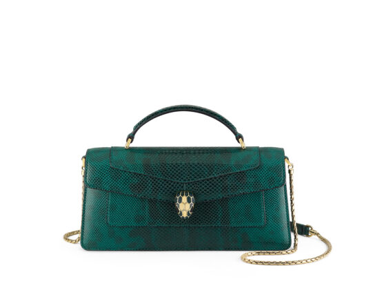 В линейке Serpenti Forever акцент смещается на форму и функциональность. Новый вытянутый силуэт Elongated Top Handle делает модель универсальной, а работа с материалами — от замши с эффектом «письма» до блестящей кожи карунга — добавляет глубины. Вечерние версии с головой змеи, инкрустированной кристаллами и ониксом, возвращают коллекцию к её ювелирной сути.