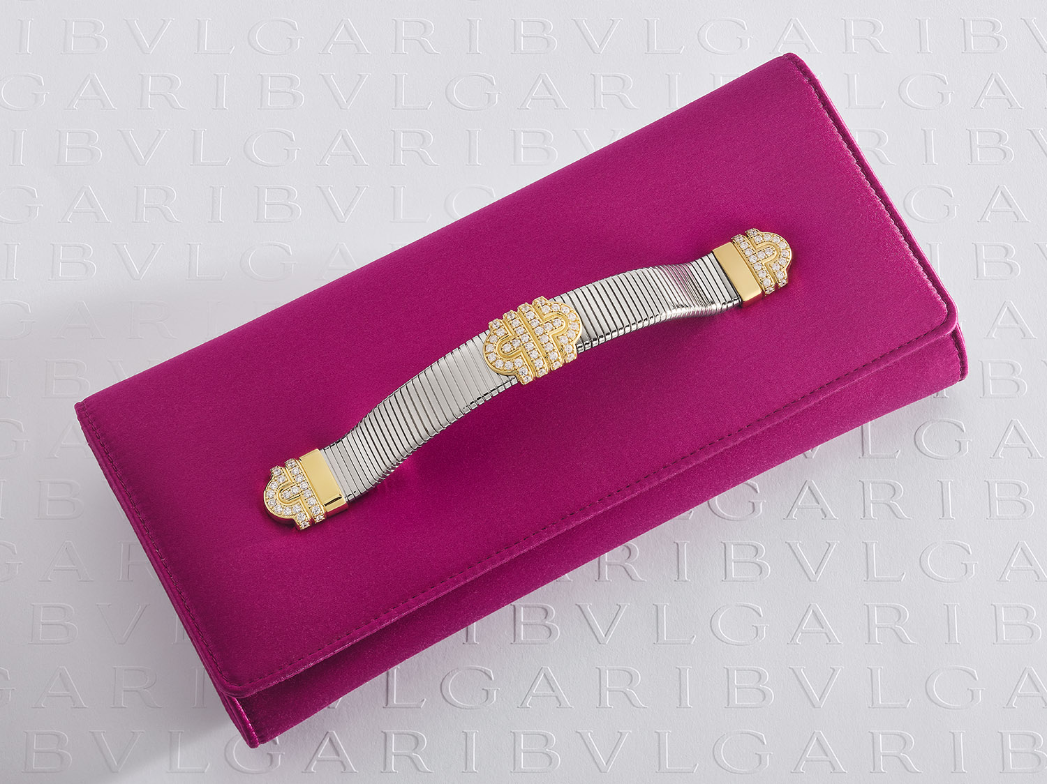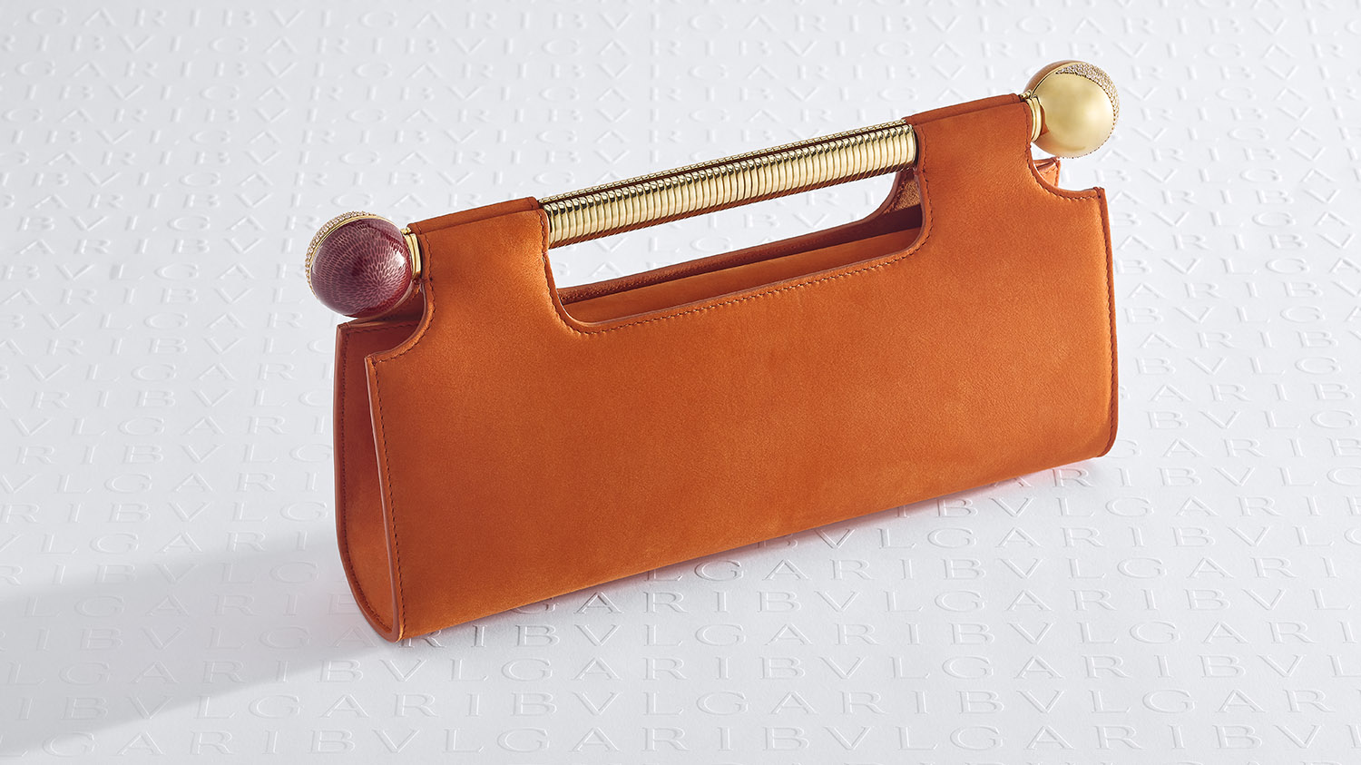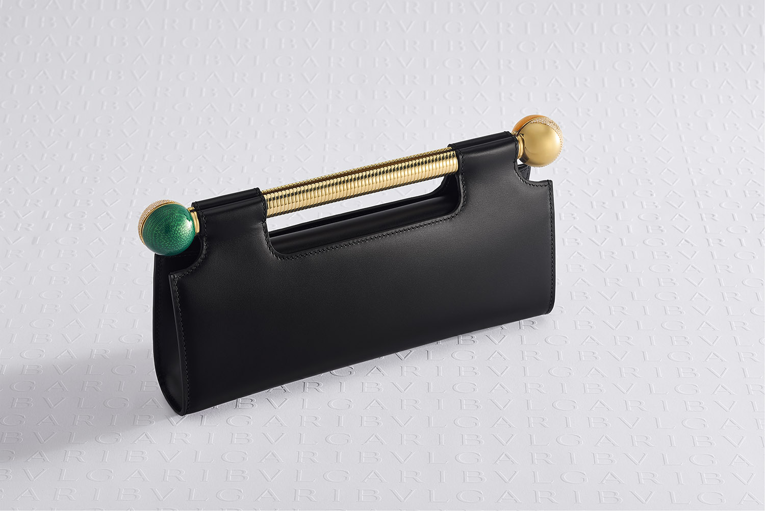 Линия Tubogas развивается как архитектурная система. Вечерние модели строятся вокруг металлической ручки — ключевого элемента, отсылающего к культовой ювелирной технике бренда. Сумка Tubogas Sphere сочетает строгий прямоугольный силуэт с декоративными сферами, вдохновлёнными браслетами 1970-х. Вариации — от эмалевых полупрозрачных оттенков до полностью инкрустированных кристаллами поверхностей.