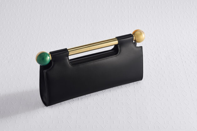 Тема продолжается в моделях Parentesi и Cabochon: бархат, атлас и экзотические кожи здесь работают как фон для сложных металлических конструкций и вставок из твёрдых камней. Это уже не аксессуар в привычном смысле, а объект с выраженной пластикой и весом.